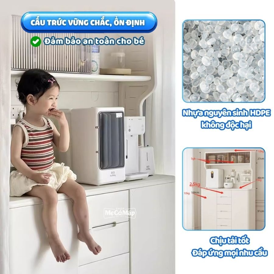 – Khu bàn chứa đồ dài 106 rộng 43cm đáp ứng thoải mái nhu cầu sắp xếp và lưu trữ, đủ sức nâng đỡ mọi vật dụng: từ máy khử trùng đến bình sữa, khăn giấy hay món decor nhẹ nhàng.