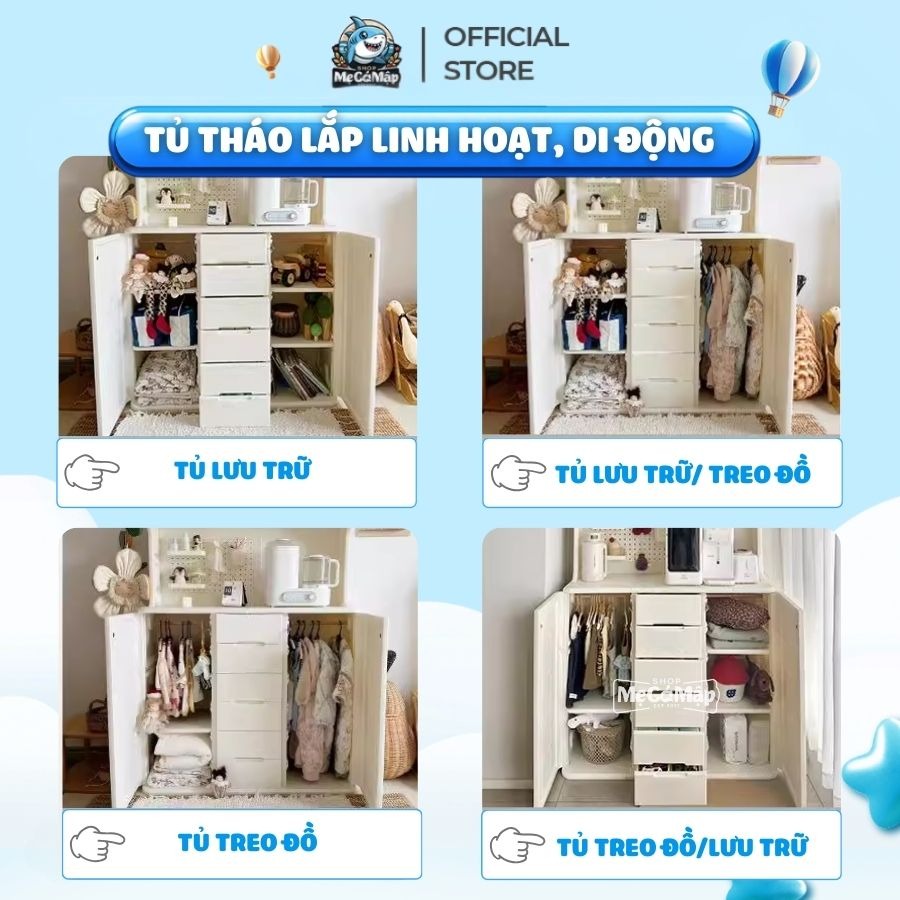 – Hộc đựng có thể tháo rời dễ dàng để vệ sinh, phù hợp cho các mục đích khác nhau như làm tủ đồ decor, tủ giày, hoặc kệ trang trí.