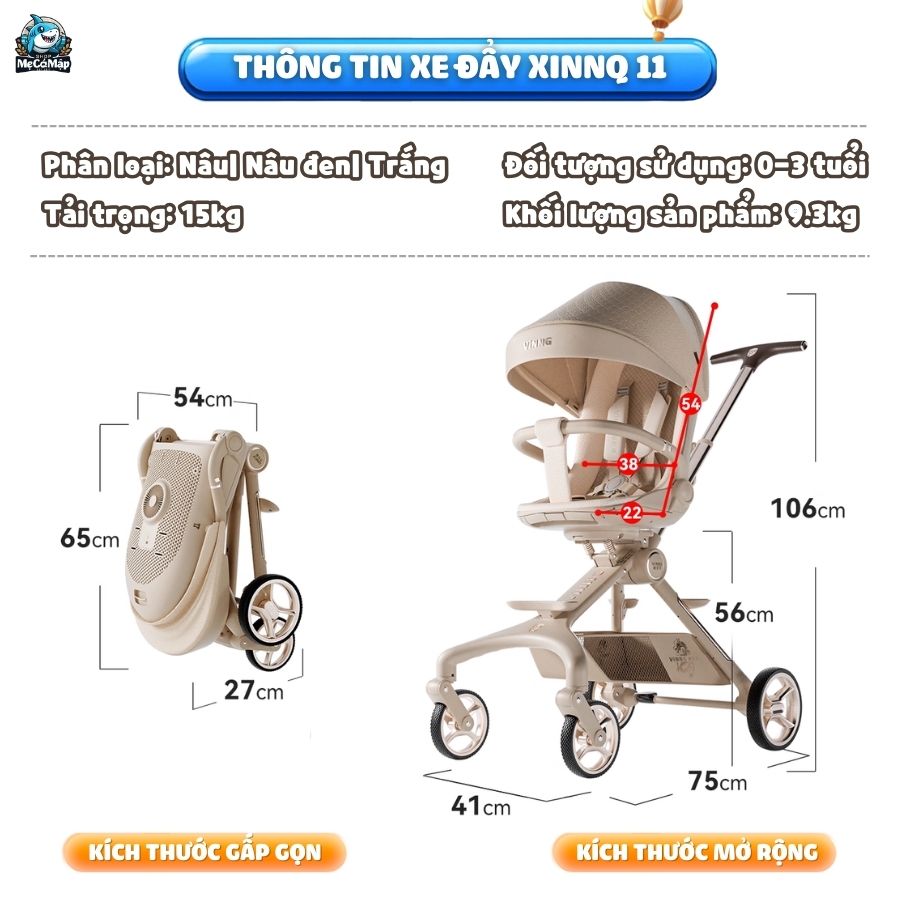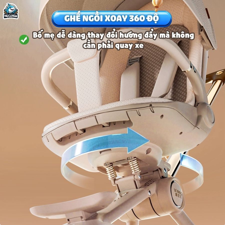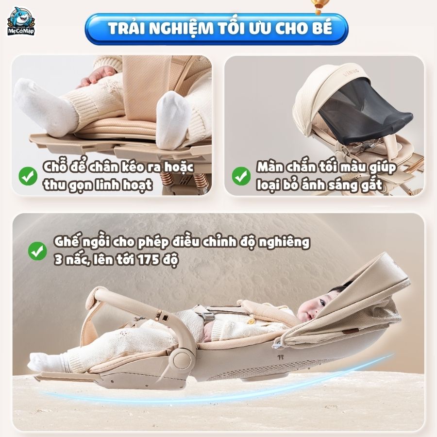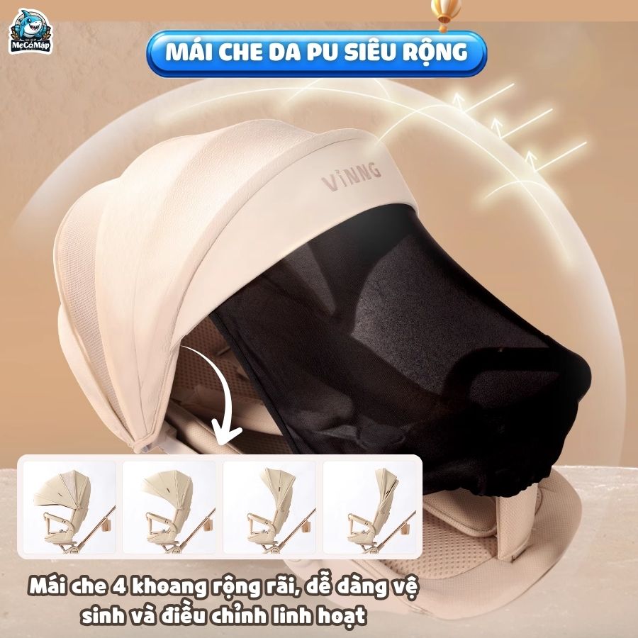 Xe đẩy gấp gọn 2 chiều Vinng Q11 là phiên bản quốc tế mới nhất năm 2025, nổi bật với thiết kế hiện đại, sang trọng và tinh tế trong từng chi tiết. Sản phẩm được tích hợp quạt làm mát 3 chế độ thông minh, mang đến sự thoải mái tối đa cho bé trong mọi điều kiện thời tiết.