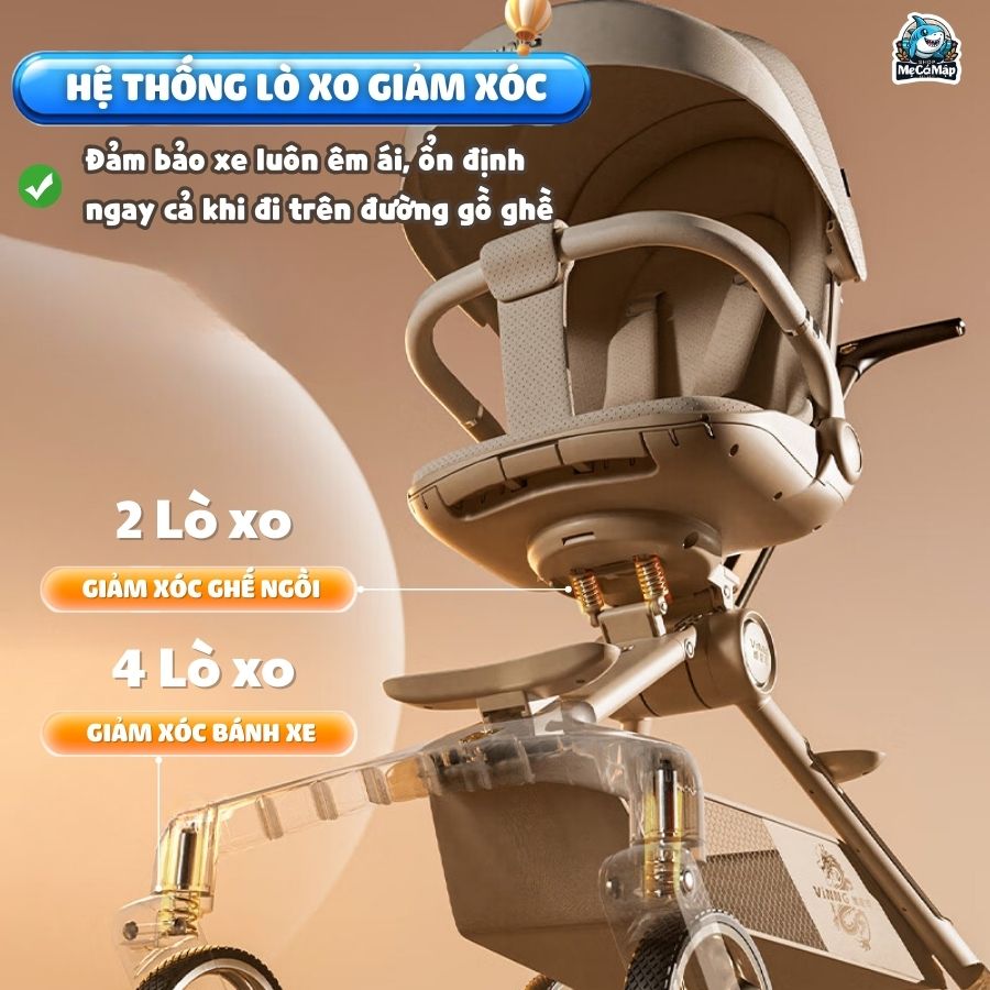 – Điểm đặc biệt nằm ở hệ thống 6 lò xo tiên tiến bao gồm giảm xóc kép dưới ghế ngồi và giảm xóc tại 4 bánh đảm bảo cột sống bé được bảo vệ tối đa và mang lại chuyển động an toàn, êm ái tuyệt đối